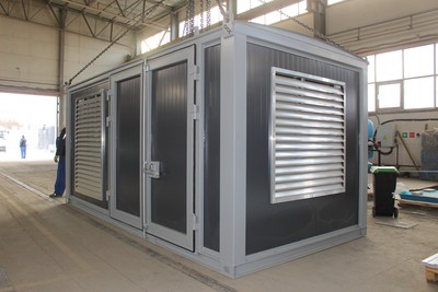Внутри контейнера установлен дизельный генератор с автоматическим вводом резерва (АВР), мощностью 400 кВт на базе двигателя Weifang, что обеспечивает бесперебойное энергоснабжение объекта.